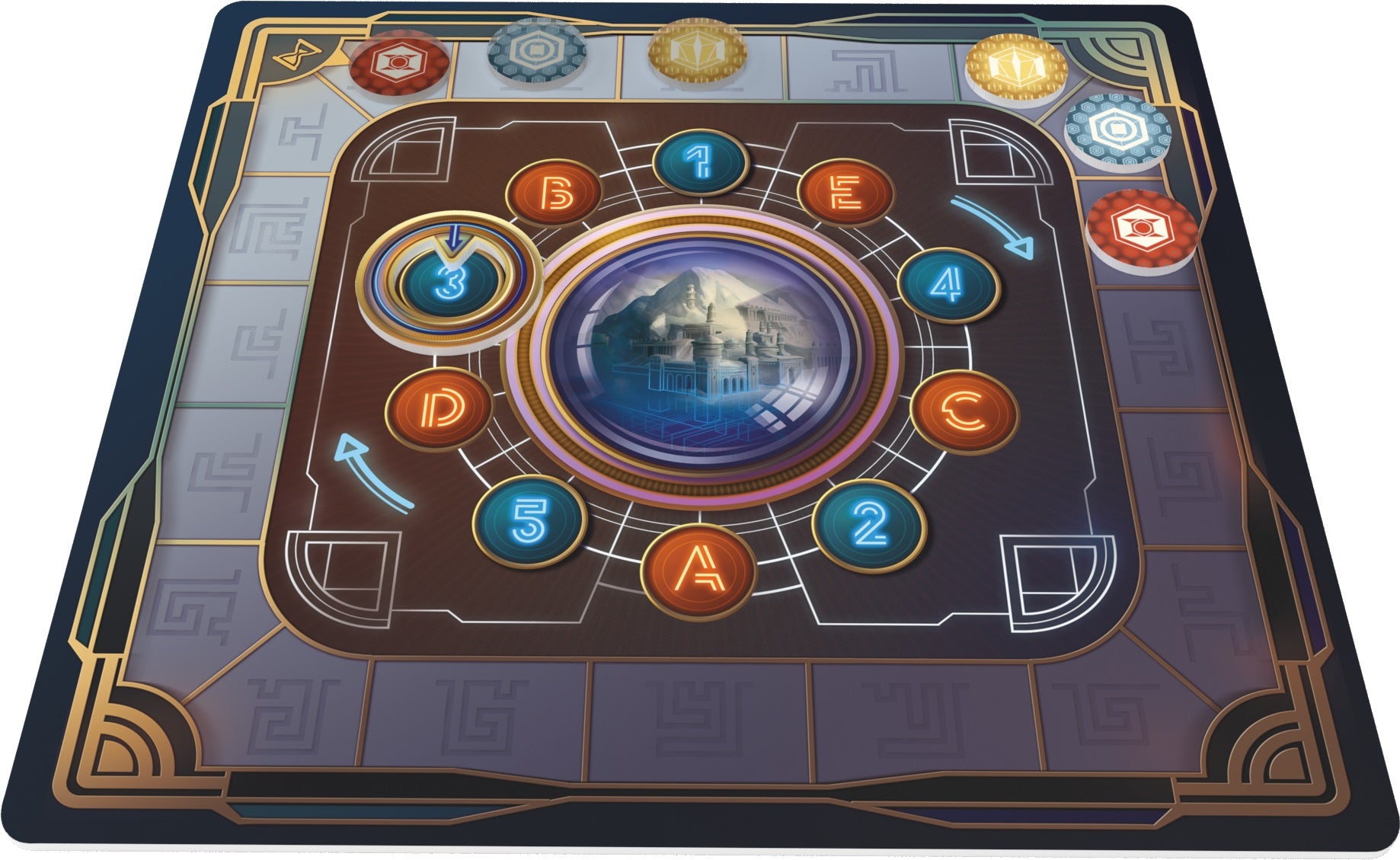 Determine the question you want to ask the Archeoscope and move your pawn forward on the Time track as many positions as the total cost of the question.