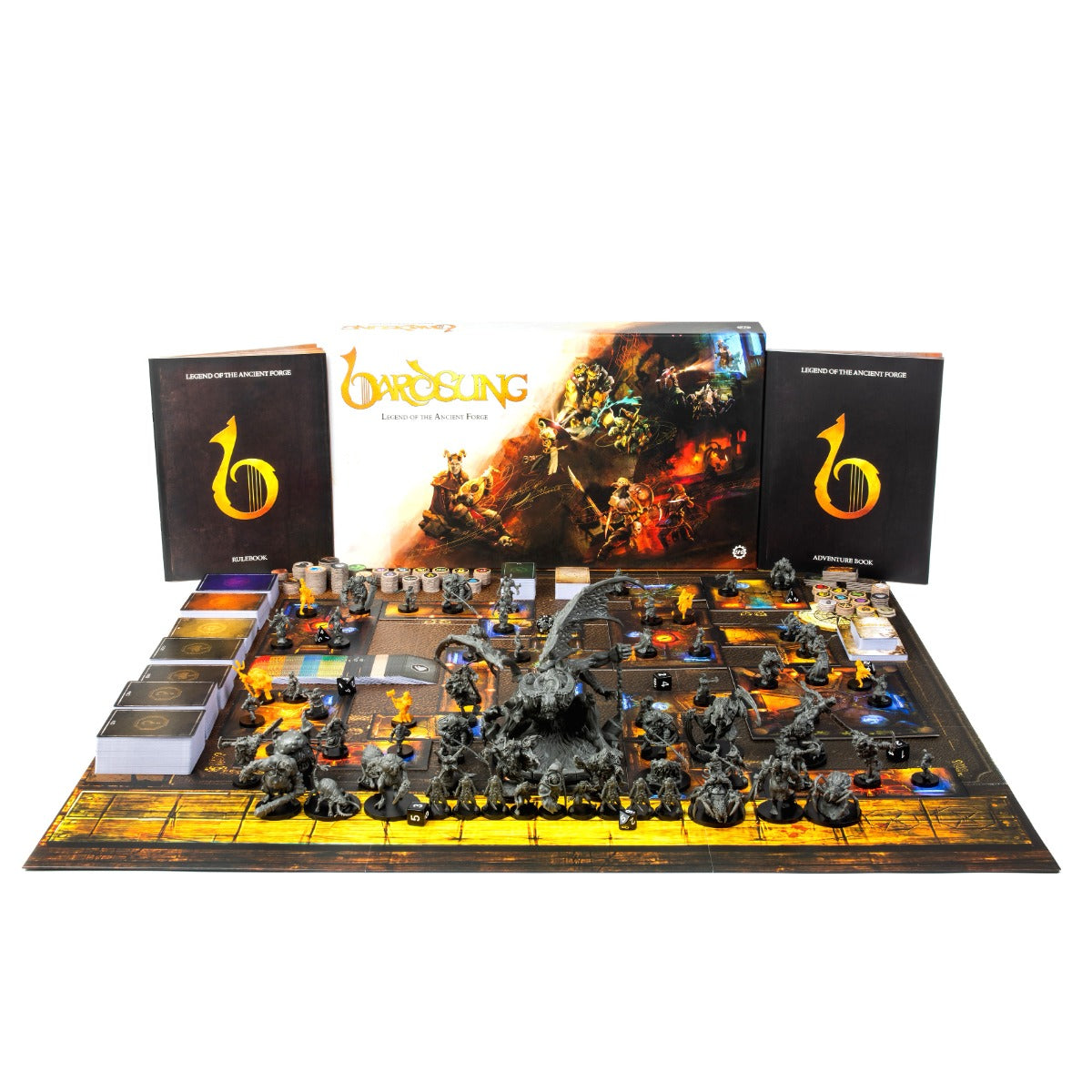Become a songworthy hero in Bardsung: Legend of the Ancient Forge, the cooperative dungeon explorer board game for 1-5 players. Players take control of a ragtag band of budding adventurers exploring a mysterious Ancient Forge to uncover the hidden secrets within.