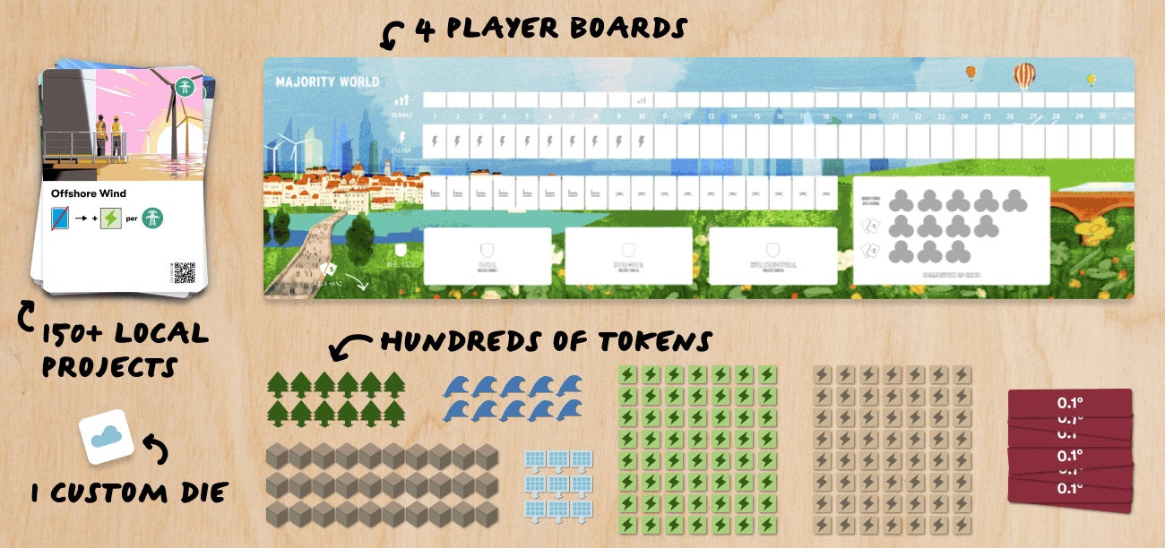 Daybreak is a co-operative game about climate action. Each player controls a world power, deploying policies and technologies to both dismantle the engine of global heating and to build resilient societies that protect people from life-threatening crises.