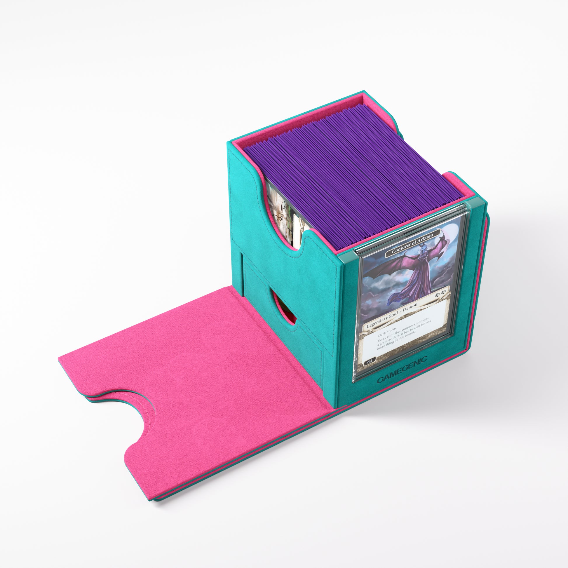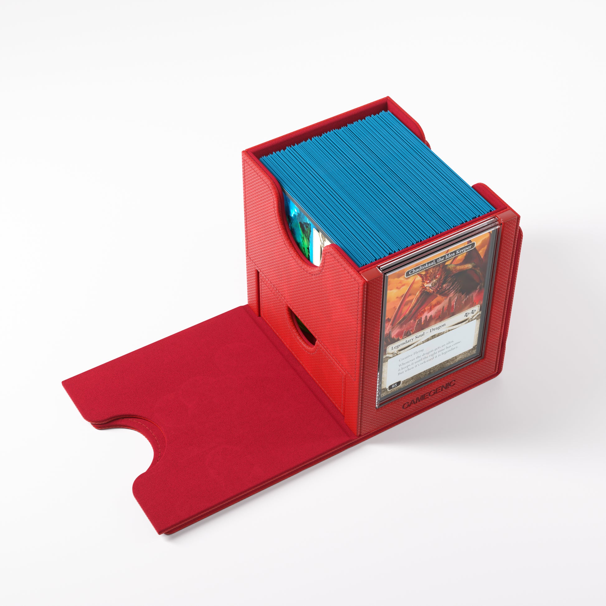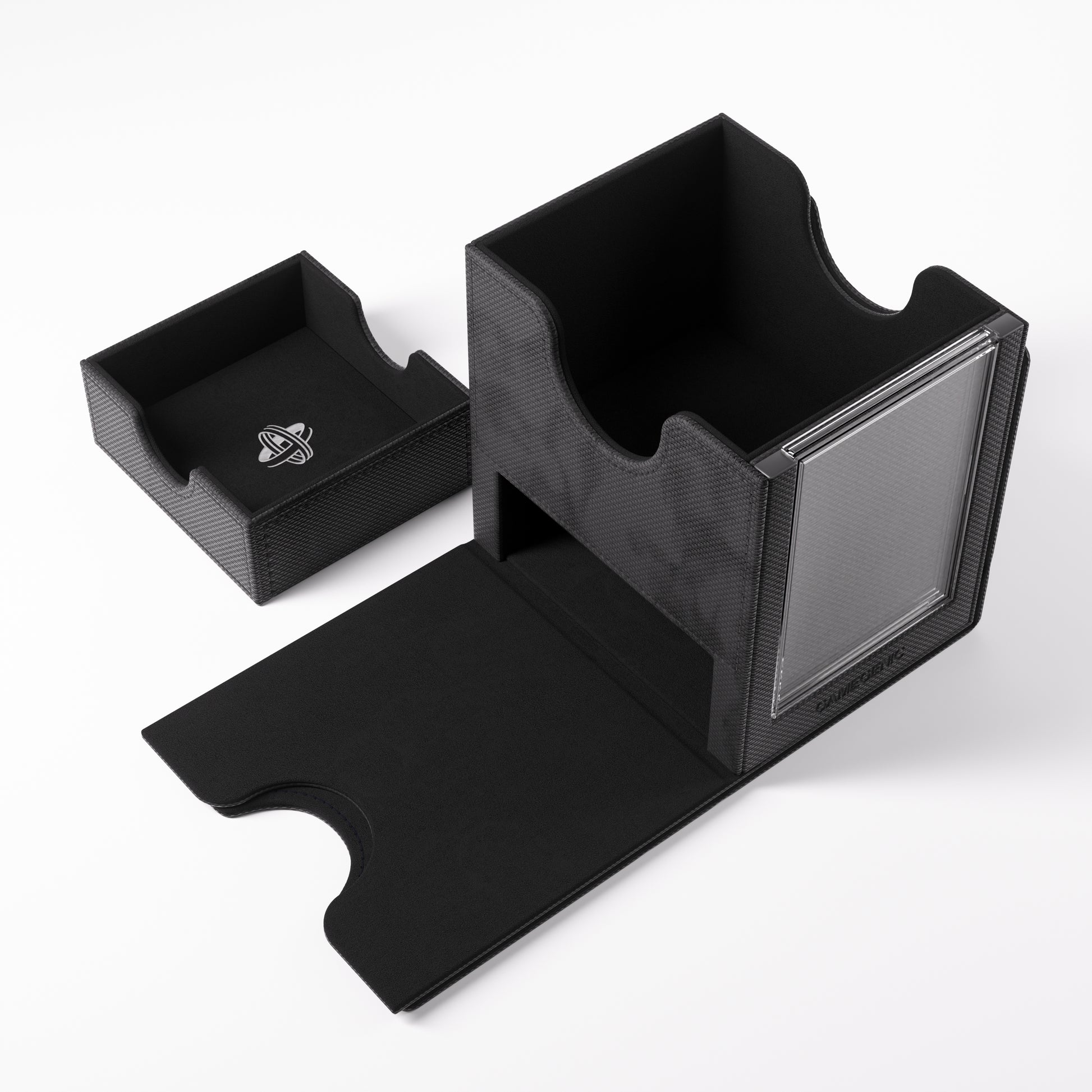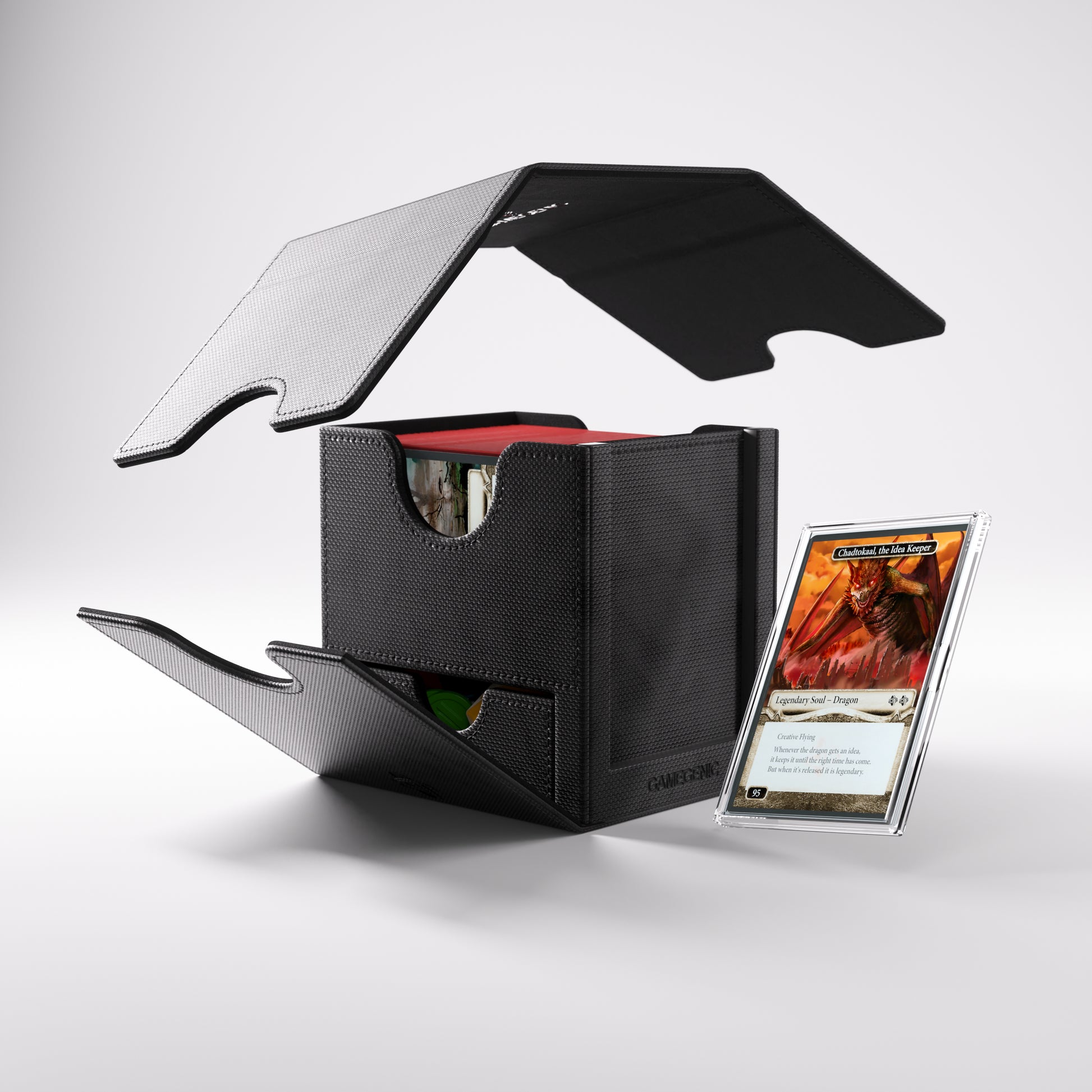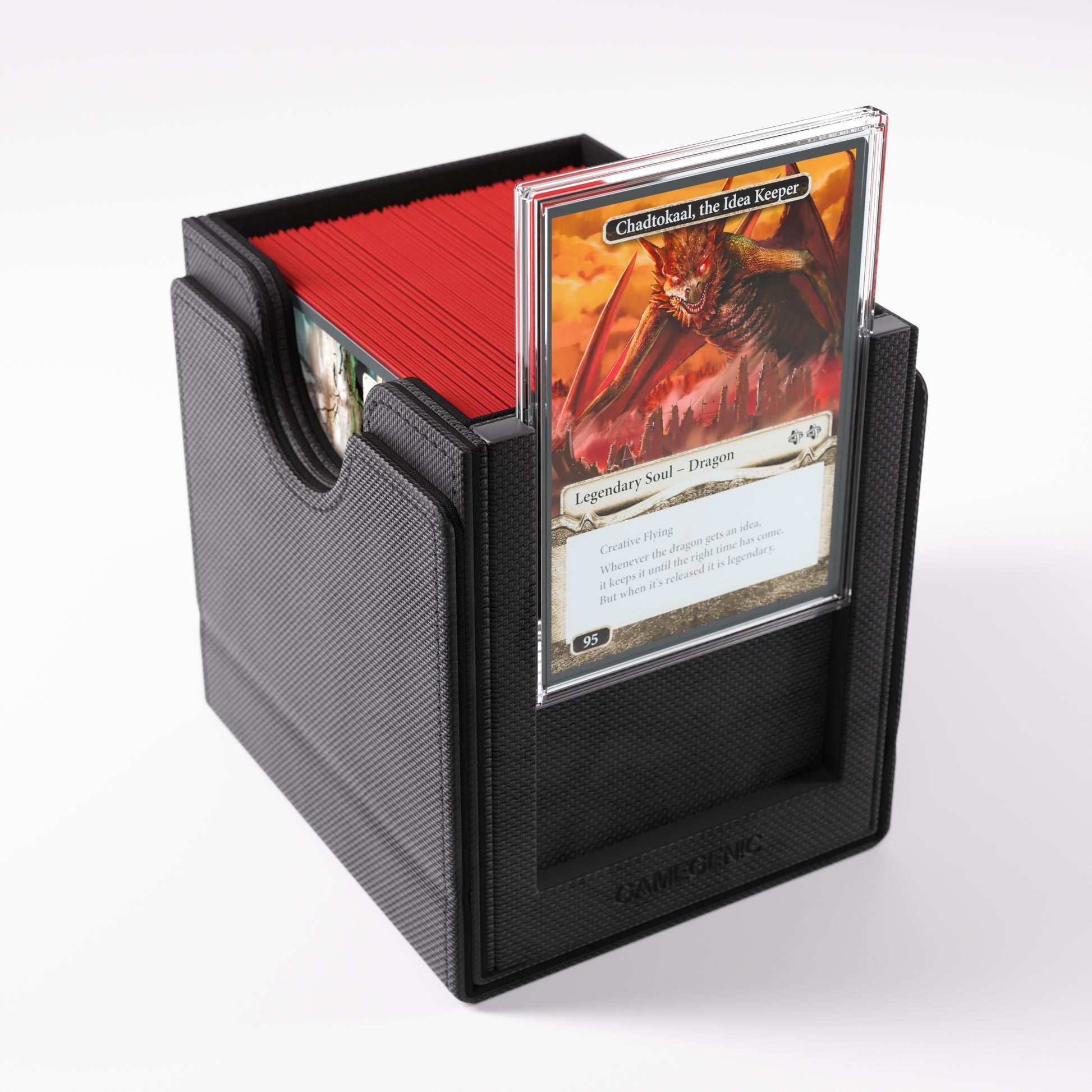 The Sidekick PRO 100+ XL is a premium deck box, specifically designed for the widely popular Magic: The Gathering format COMMANDER. It includes a Slide Card Case for displaying the Commander or top card with additional UV protection. Due to the innovative placement, the stored deck can be easily identified without opening the box. The Slide Card Case can also be detached and used during gameplay. The integrated drawer holds additional tokens and other accessories.