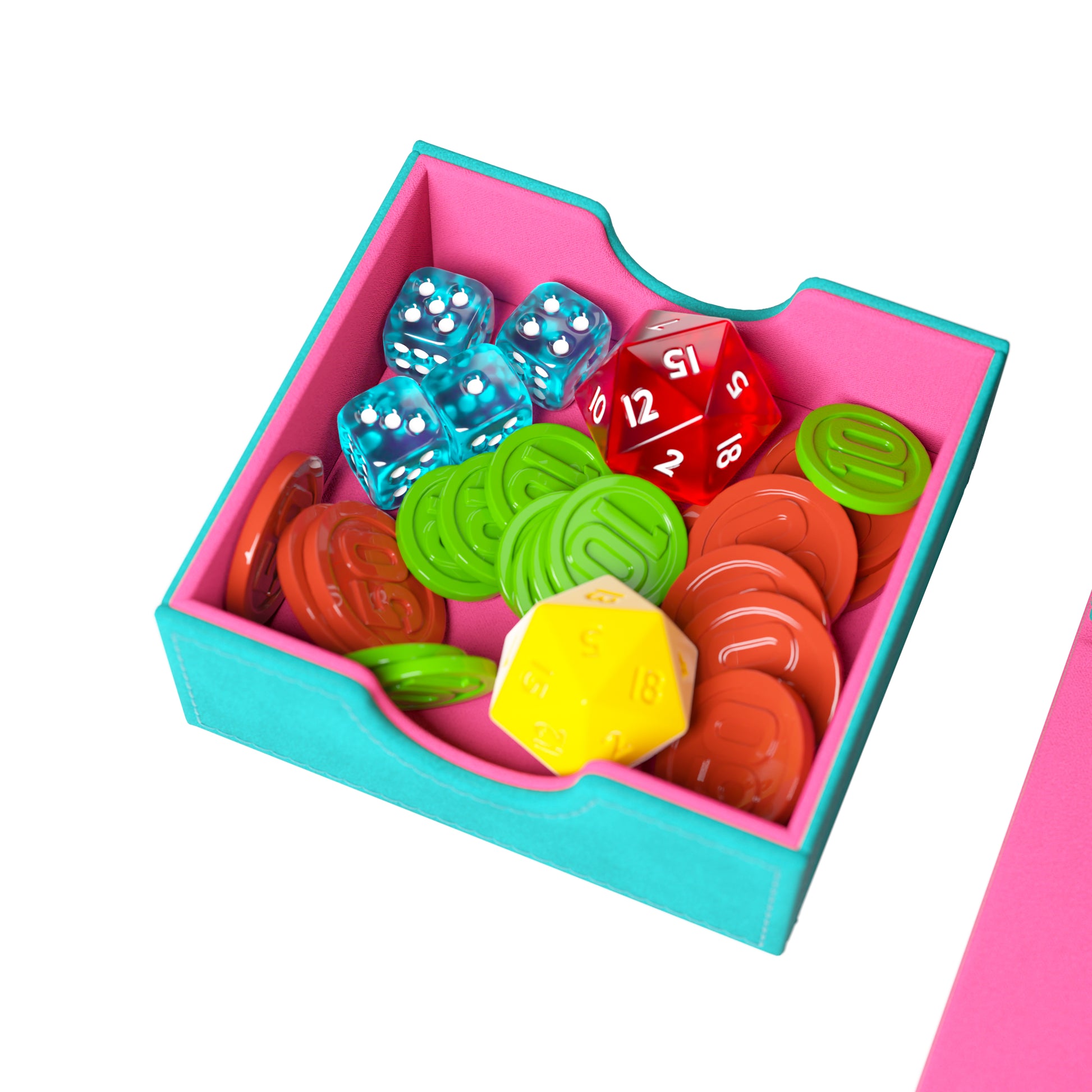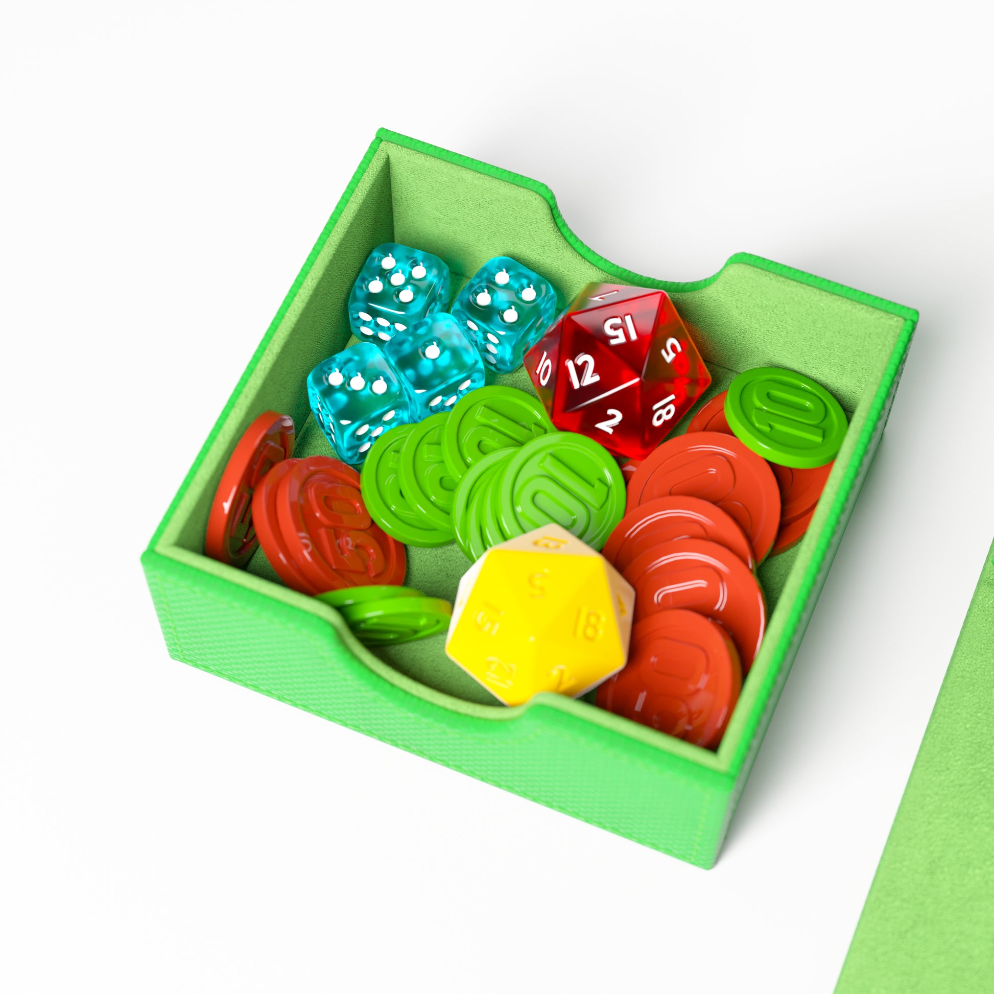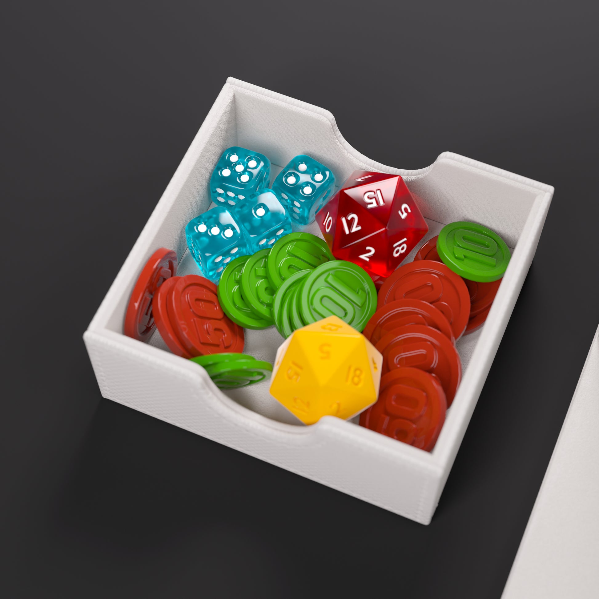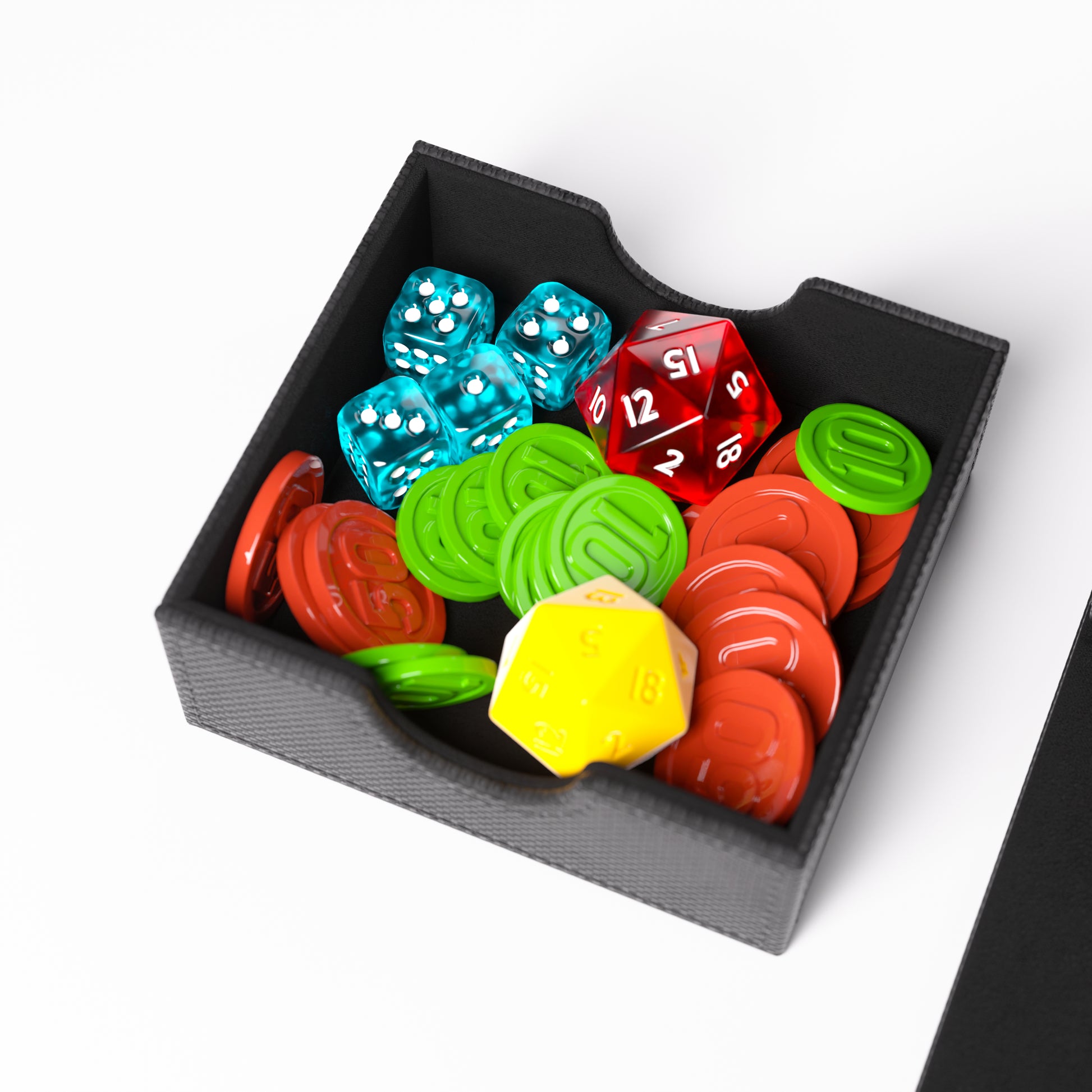 - CONVERTIBLE system: completely removable cover clips to the bottom, saving precious space on the gaming table