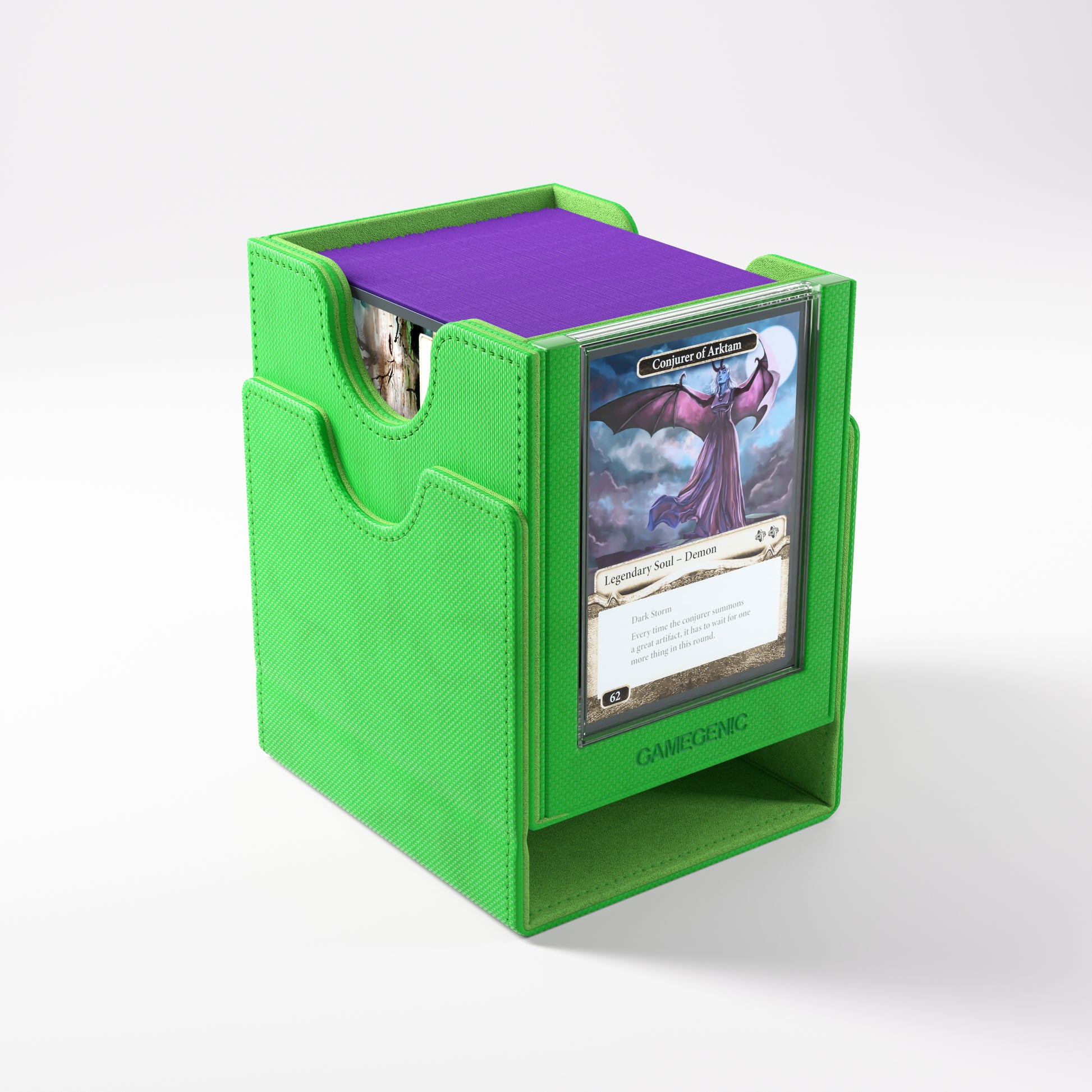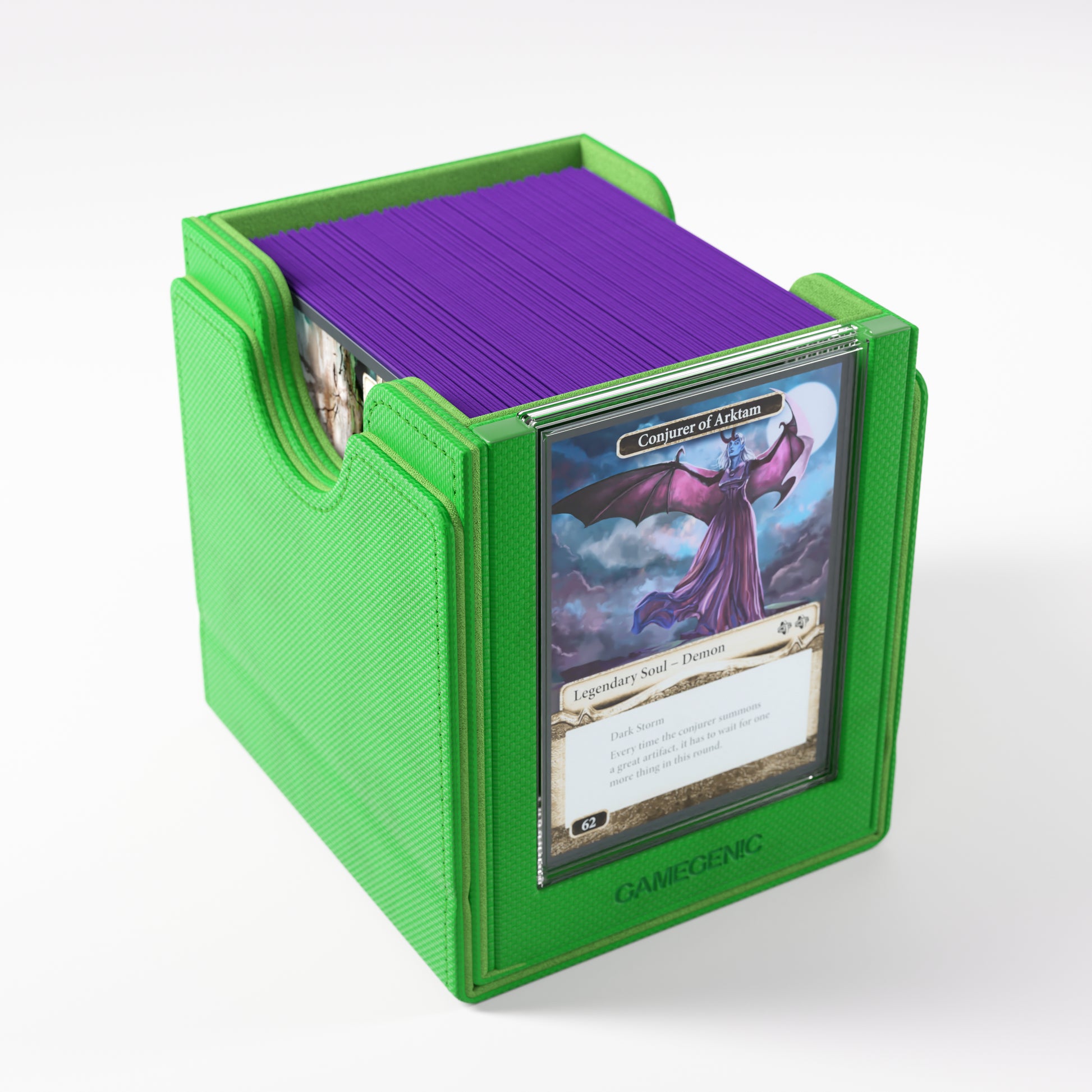 The Sidekick PRO holds 100 double-sleeved cards in extra Thick Inner Sleeves. It can also fit 100 regular double-sleeved cards and has extra room for token cards. This premium box is also equipped with our highly rated convertible system: The completely removable cover clips onto the bottom, saving precious space on the gaming table. The Sidekick PRO is available in all 5 colors used in Magic: The Gathering.