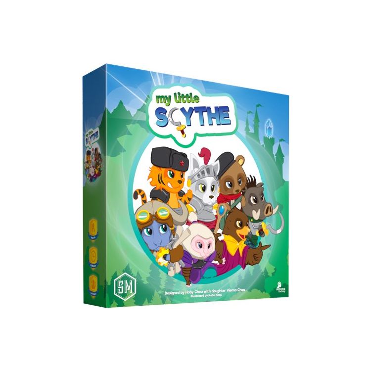 My Little Scythe is a competitive, family-friendly game in which each player controls 2 animal miniatures embarking upon an adventure in the Kingdom of Pomme.