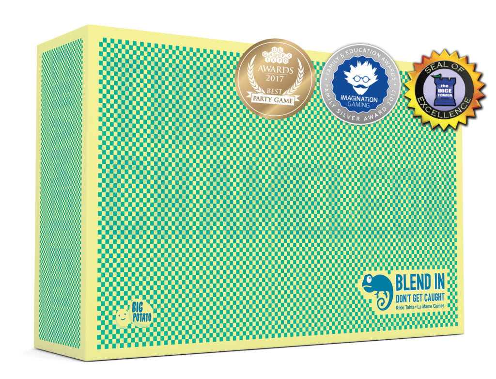 At the beginning of the round each player receives a card that tells them if they are the Chameleon or hunting the Chameleon. Two dice are rolled and this gives everyone (except the Chameleon) the coordinates to a specific word on a Topic Card – this is the Secret Word for the round. Each Topic Card features 16 related words (e.g. countries, books, food, etc.)