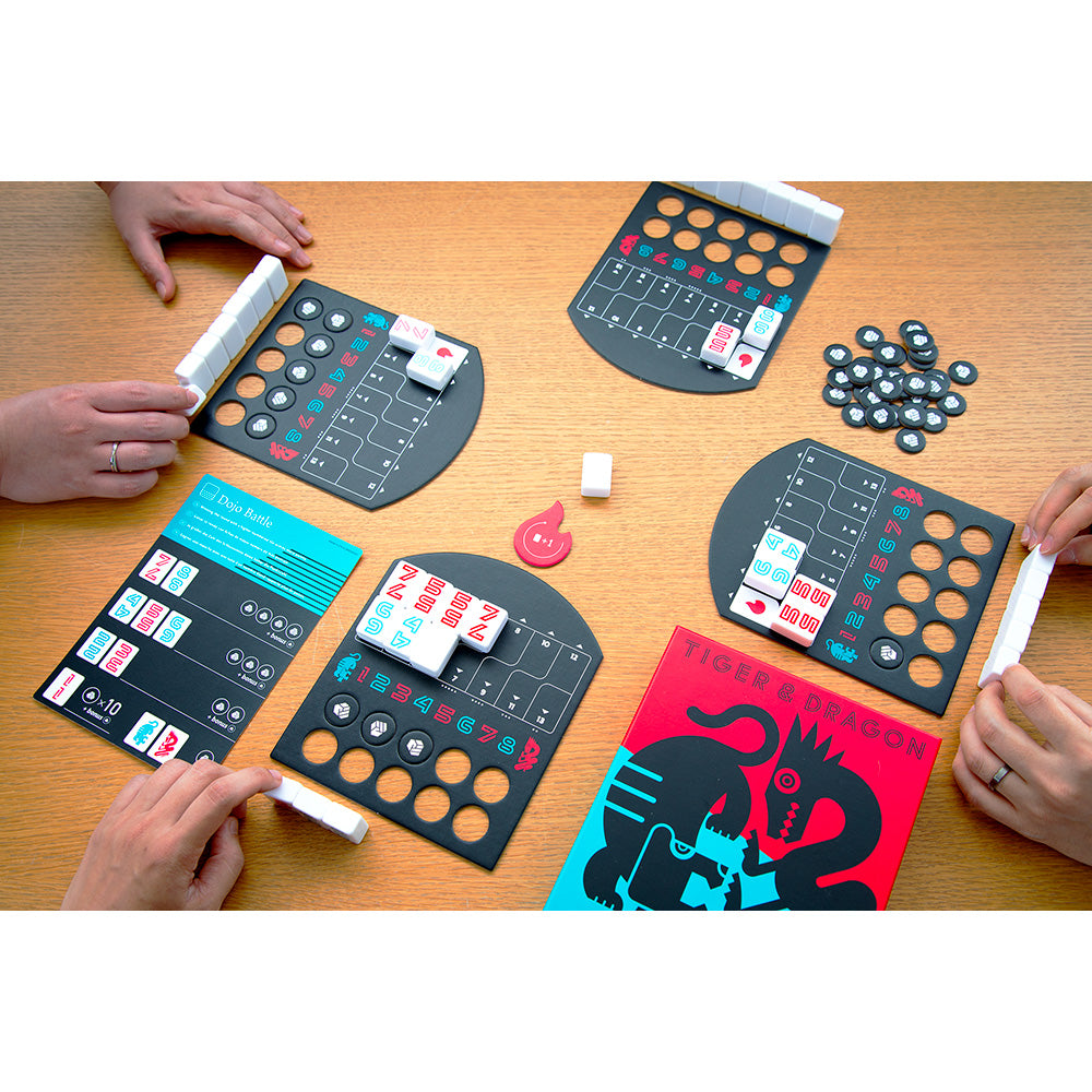 Players in Tiger & Dragon play tiles from their hand to participate in waves of attack and defense. Be the first player to empty your hand to score points based on whichever one of ten scoring cards are in use this round.